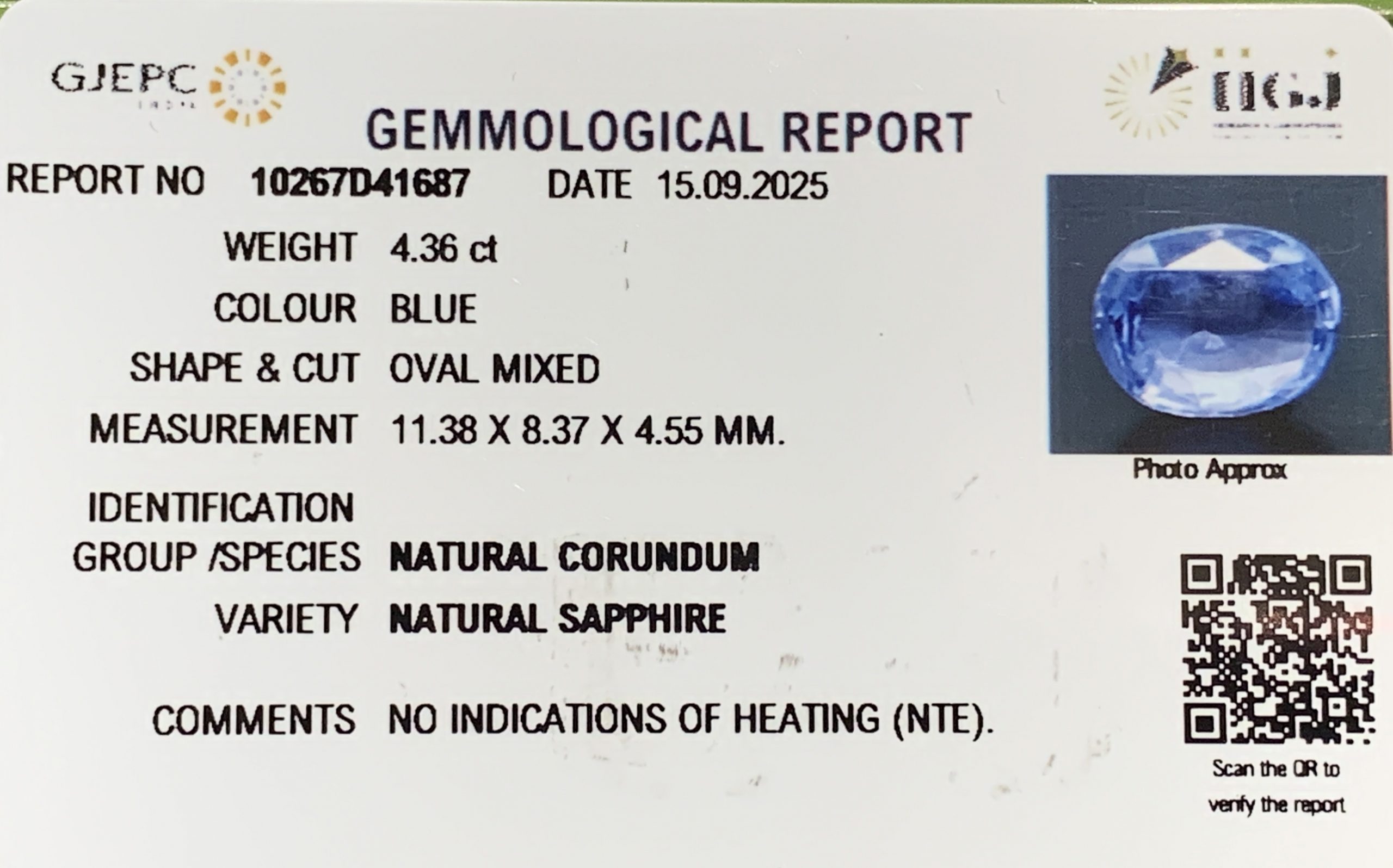 Blue Sapphire 4.36ct.@21680per. ct. (Luxury)