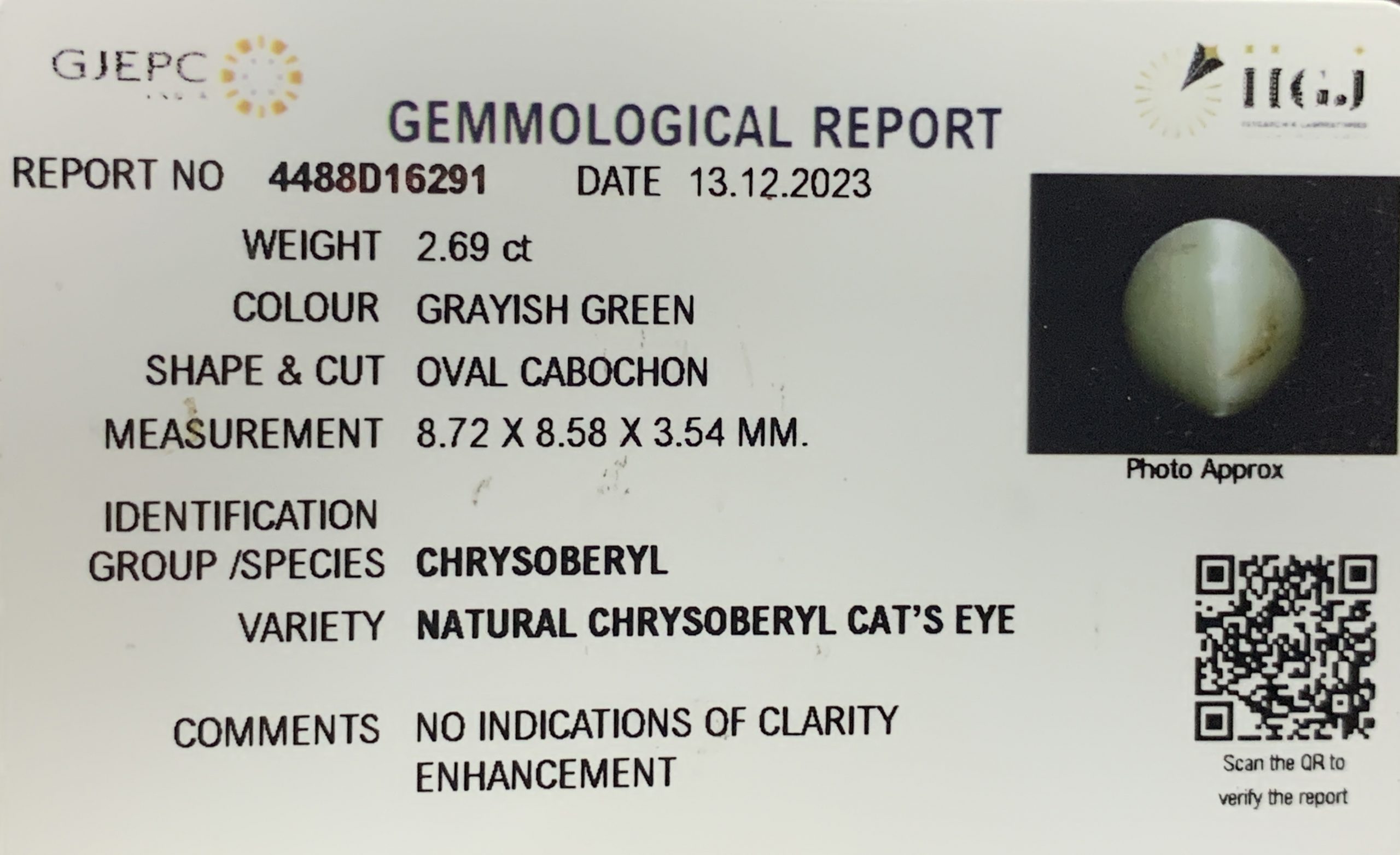 100% Natural, Non-Treated, Fine Quality Sri-Lankan Chrysoberyl Catseye for potentiating the positive energies of planet Ketu in one’s life, Astrologically Approved (Jyotish- Standard), No- Negative inclusions (According to the Ancient Gems healing Vedic Texts), Purified and energized with Vedic Ketu Mantras (To purify and magnify the planetary Energies), Certified by Govt. Lab.