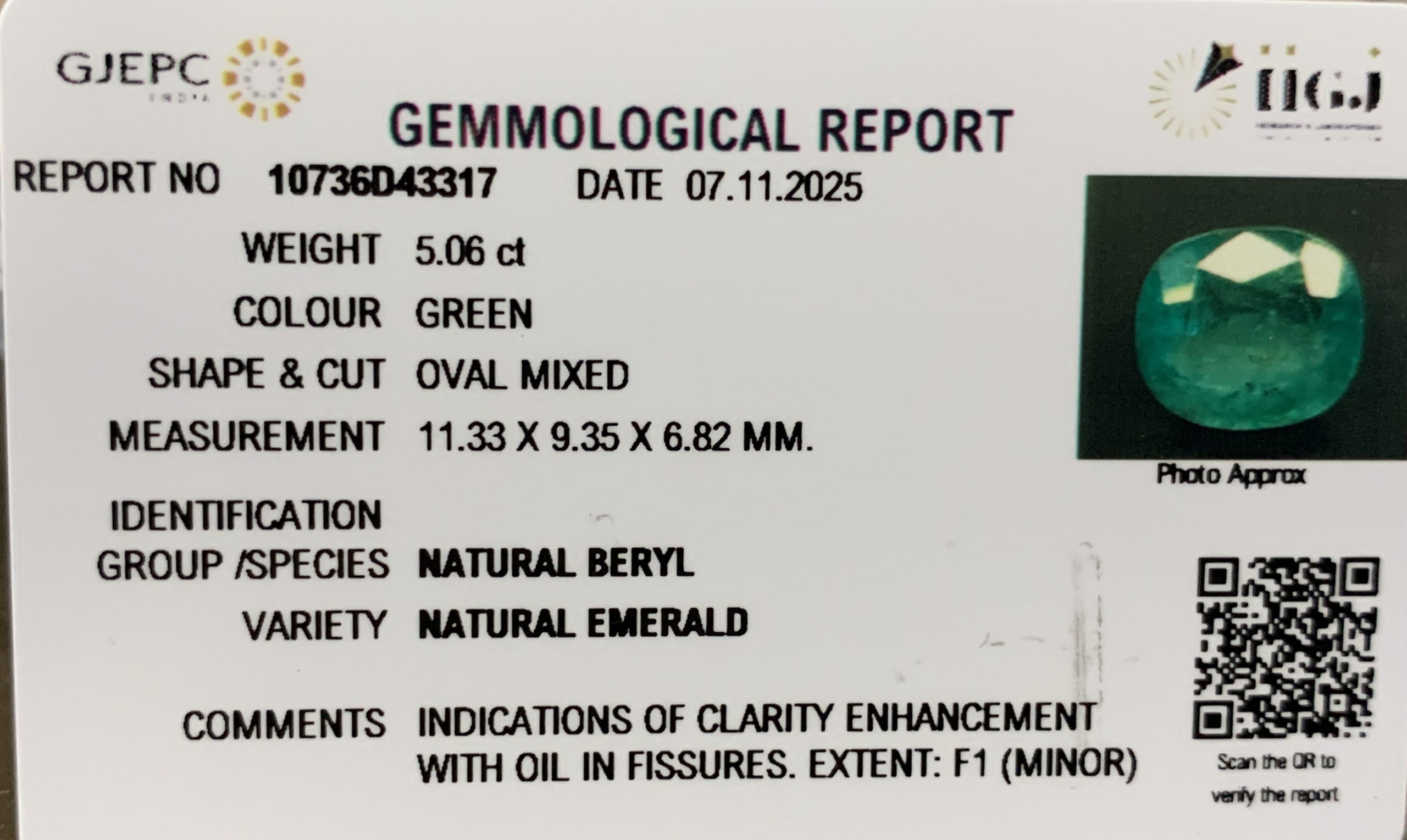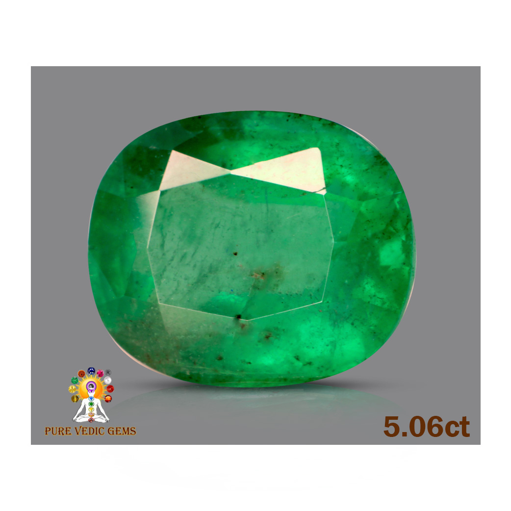 100% Natural, Non-Treated, Zambian Emerald for potentiating the positive energies of planet Budh (Mercury)  in one’s life, Astrologically Approved (Jyotish- Standard), No- Negative inclusions (According to the Ancient  Gems healing  Vedic Texts), Purified and energized with Vedic  Budh (Mercury) Mantras (To purify  and magnify the planetary Energies), Certified by Govt. Lab.