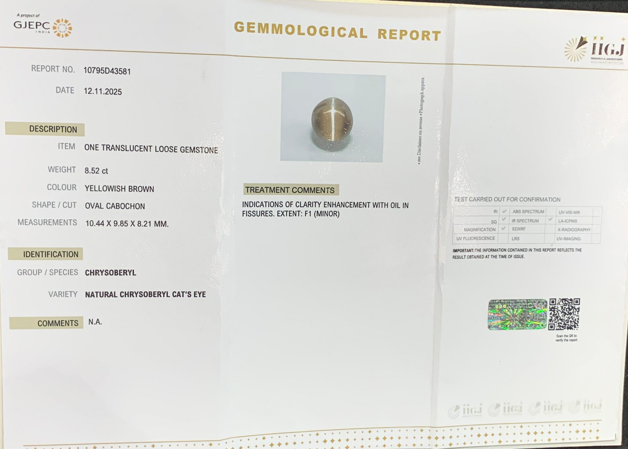 100% Natural, Non-Treated, Fine Quality Sri-Lankan Chrysoberyl Catseyes for potentiating the positive energies of planet Ketu in one’s life, Astrologically Approved (Jyotish- Standard), No- Negative inclusions (According to the Ancient  Gems healing  Vedic Texts), Purified and energized with Vedic Ketu Mantras (To purify  and magnify the planetary Energies).