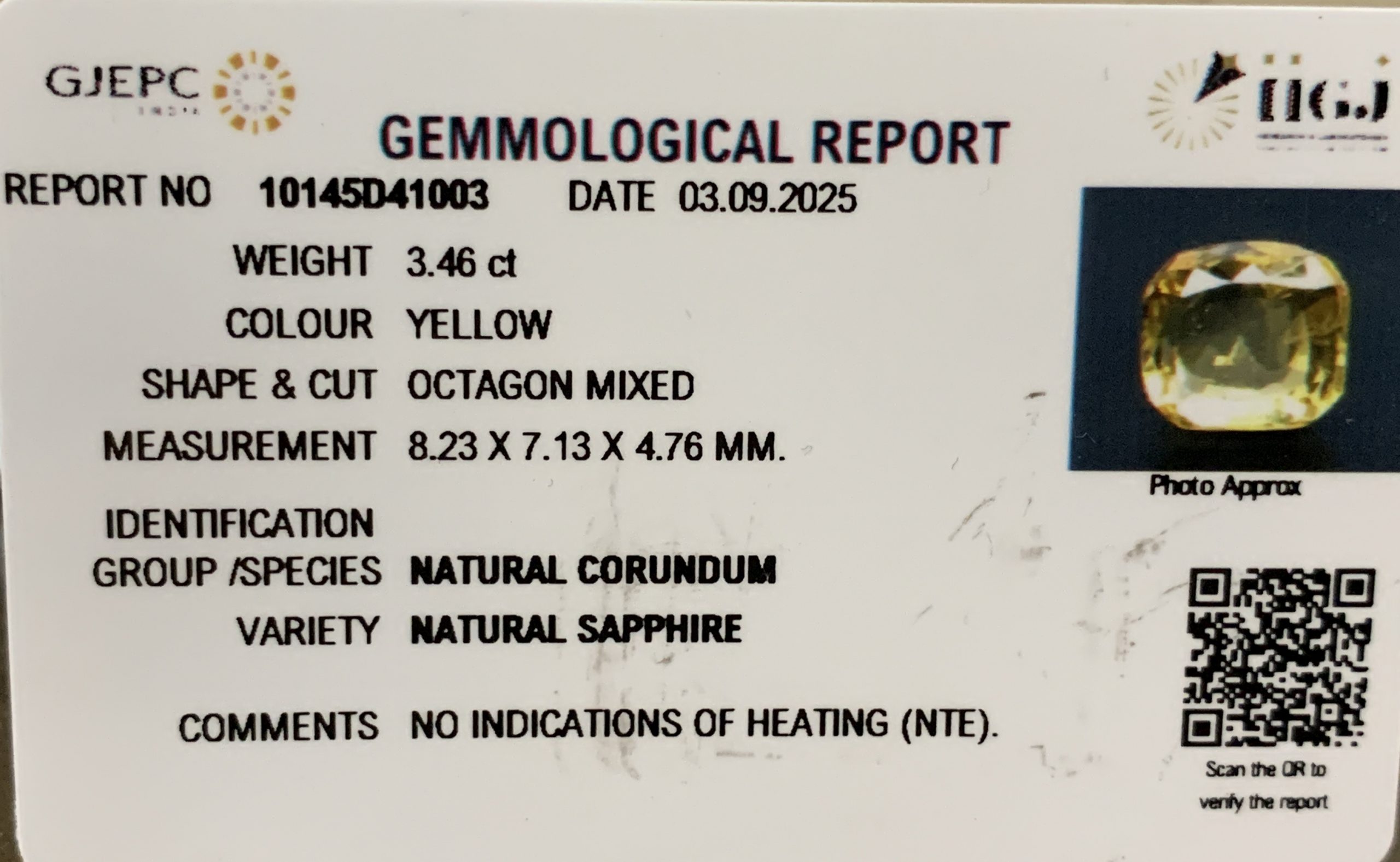 100% Natural, Non-Treated, Sri-Lankan Yellow Sapphire for potentiating the positive energies of planet Brihaspati (Jupiter) in one ’s life, Astrologically Approved (Jyotish- Standard), No- Negative inclusions (According to the Ancient Gems healing Vedic Texts), Purified and energized with Vedic Brihaspati (Jupiter) Mantras (To purify and magnify the planetary Energies).