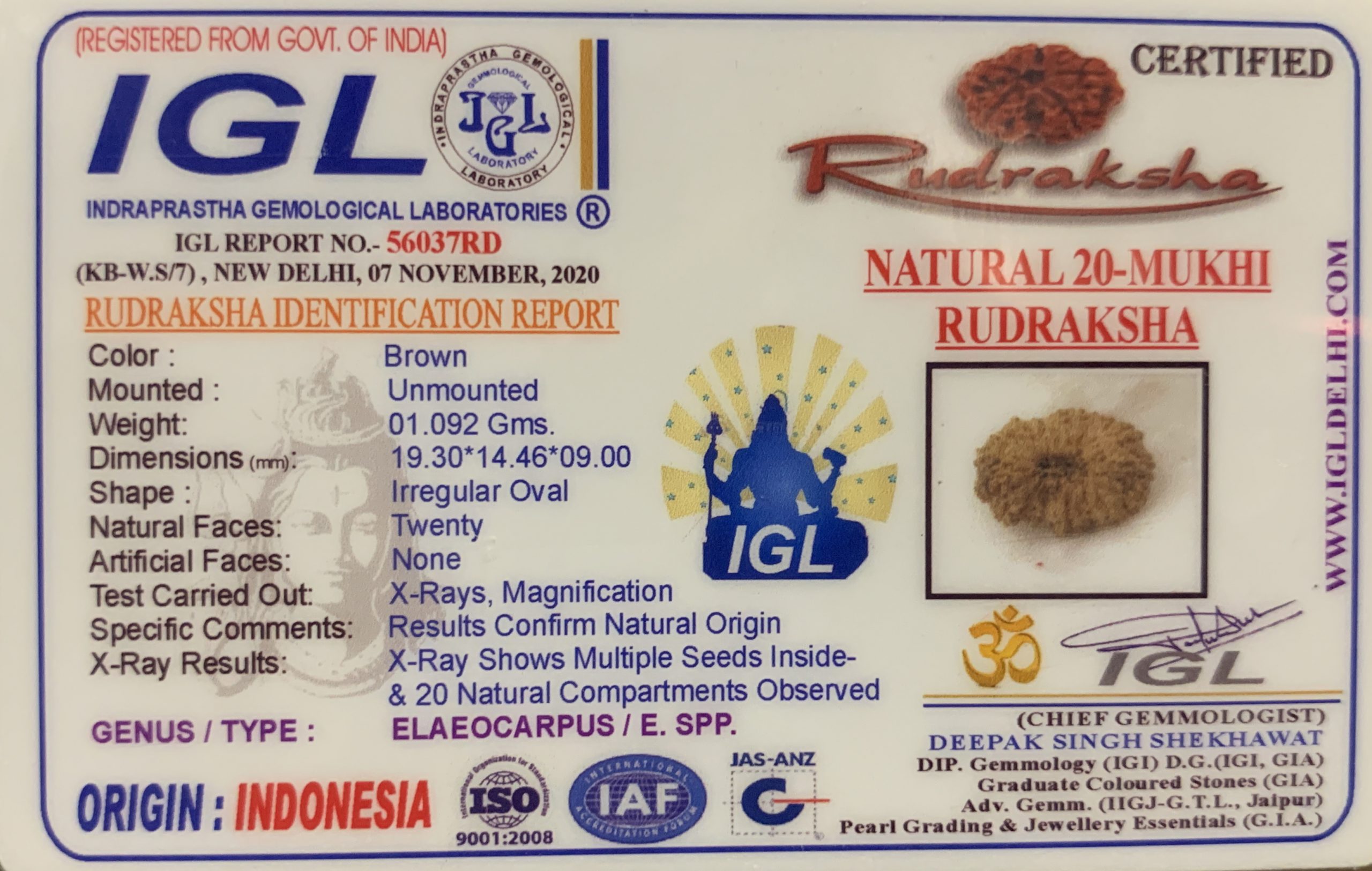 20 Mukhi Rudraksha (1.009mg) On Demand