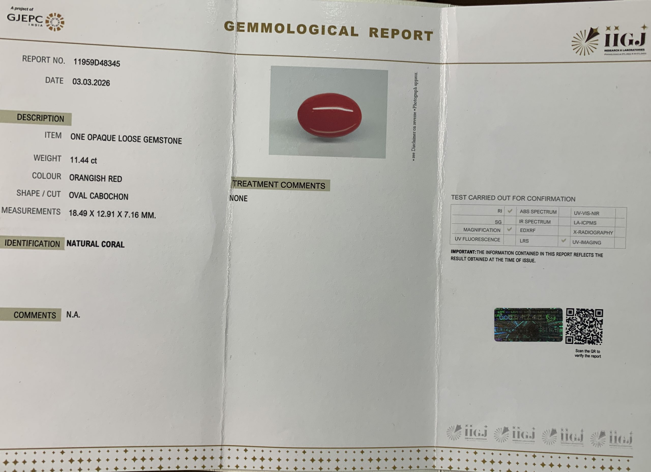 Japanese Red Coral 11.44ct@8754Per. ct.