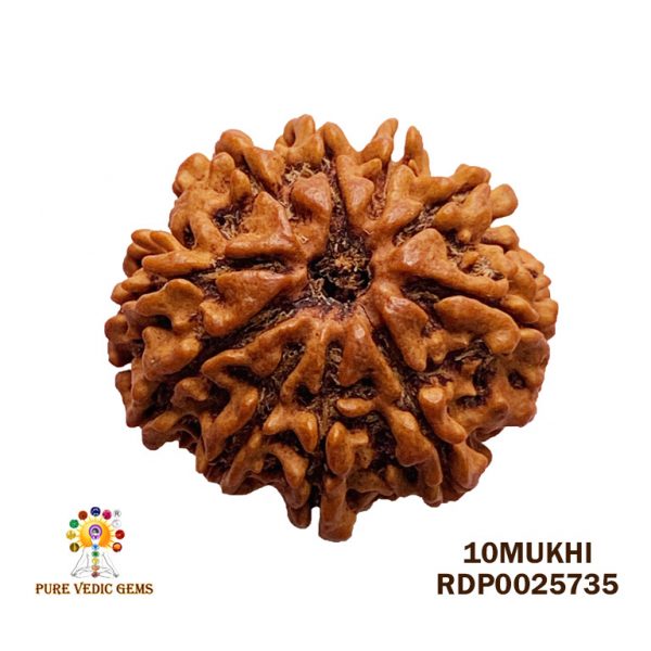 The ten Mukhi Rudraksha contains the influence all planets and ten directions. Lord Vishnu becomes happy with the person who wears it. It is useful in pacifying nine planets. All sins done by the human organs are destroyed by wearing it.