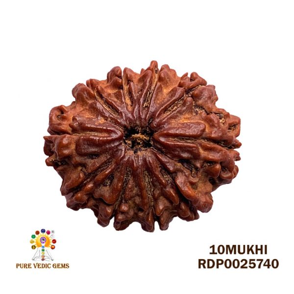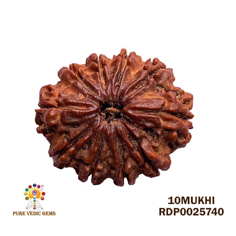The ten Mukhi Rudraksha contains the influence all planets and ten directions. Lord Vishnu becomes happy with the person who wears it. It is useful in pacifying nine planets. All sins done by the human organs are destroyed by wearing it.