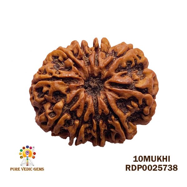 The ten Mukhi Rudraksha contains the influence all planets and ten directions. Lord Vishnu becomes happy with the person who wears it. It is useful in pacifying nine planets. All sins done by the human organs are destroyed by wearing it.