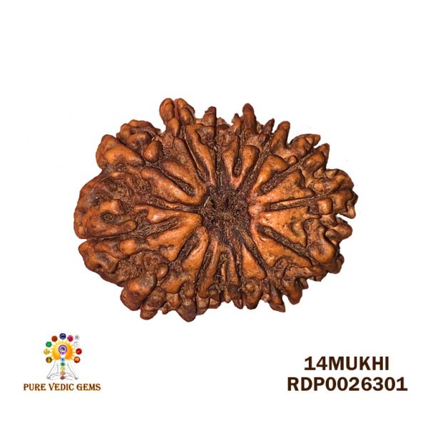 The fourteen mukhi Rudraksha pleases Lord Shiva and gives the wearer power to see the future. It is the most precious divine thing known as Deva Mani. It awakens the sixth sense by which the wearer foresees the future happenings. It’s wearer never fails in decision and gets rid of all the calamities, miseries and worries. The fourteen mukhi Rudraksha provides the wearer with safety and riches.