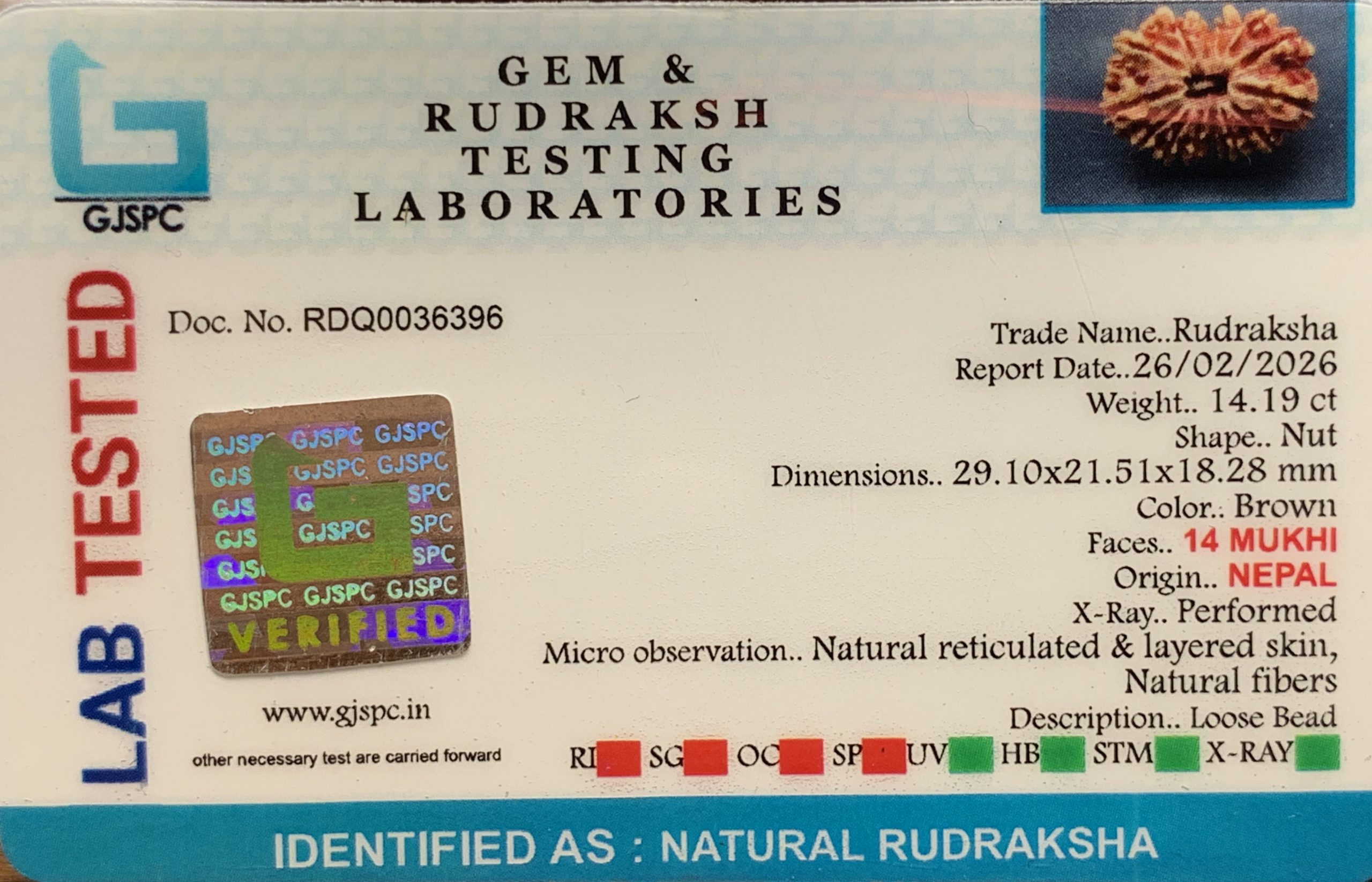 14 Mukhi Rudraksha (2.838g)
