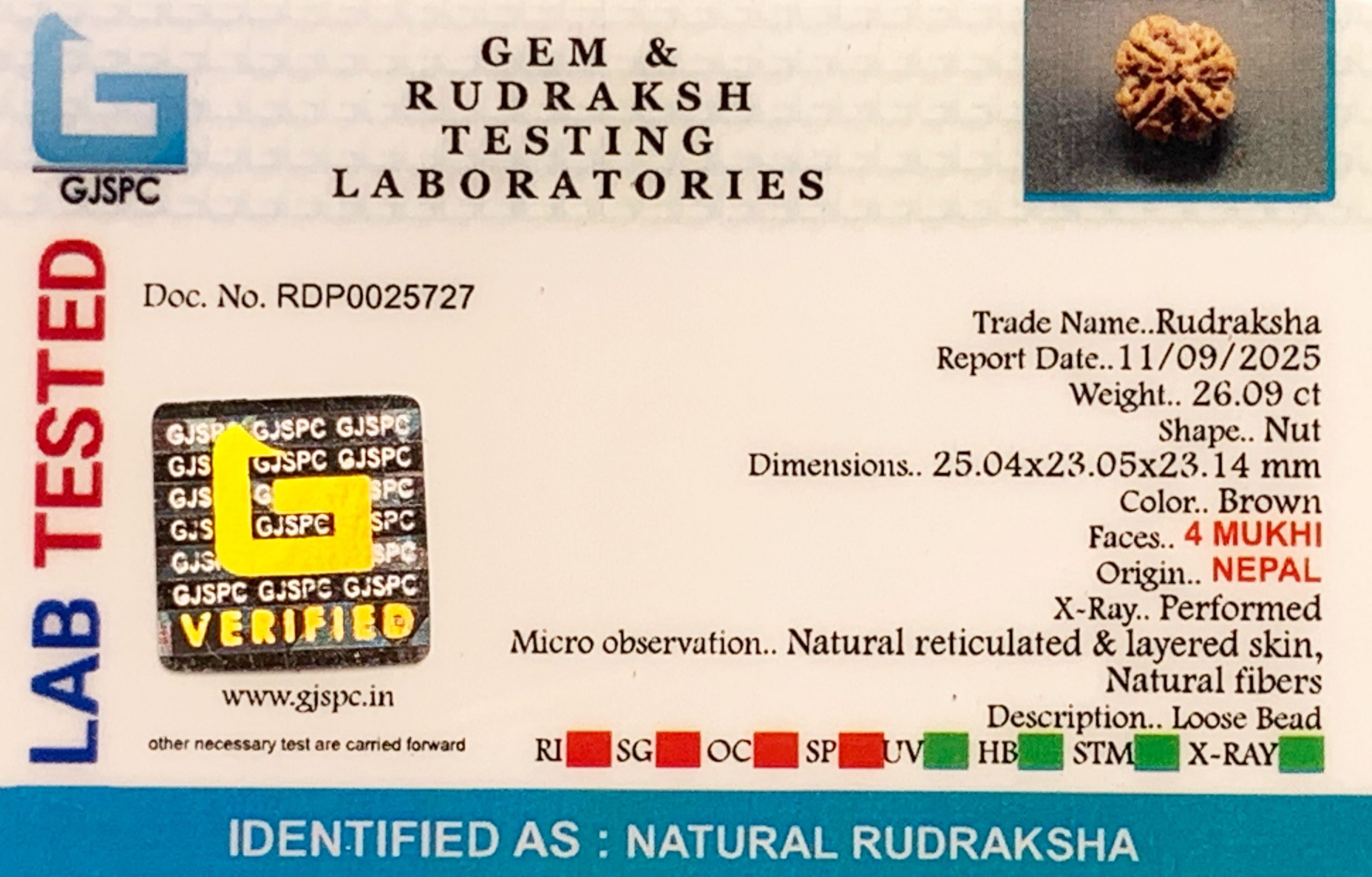 Four Faced Rudraksha is ruled by Mercury and cure diseases of ear, throat and nose, paralysis, sexual problems, gall bladder diseases, blood circulation, cough, brain related illness, asthma, stammering, memory lapse, respiratory tract problems, diseases affecting hands, arms, lungs and thyroid gland, etc.