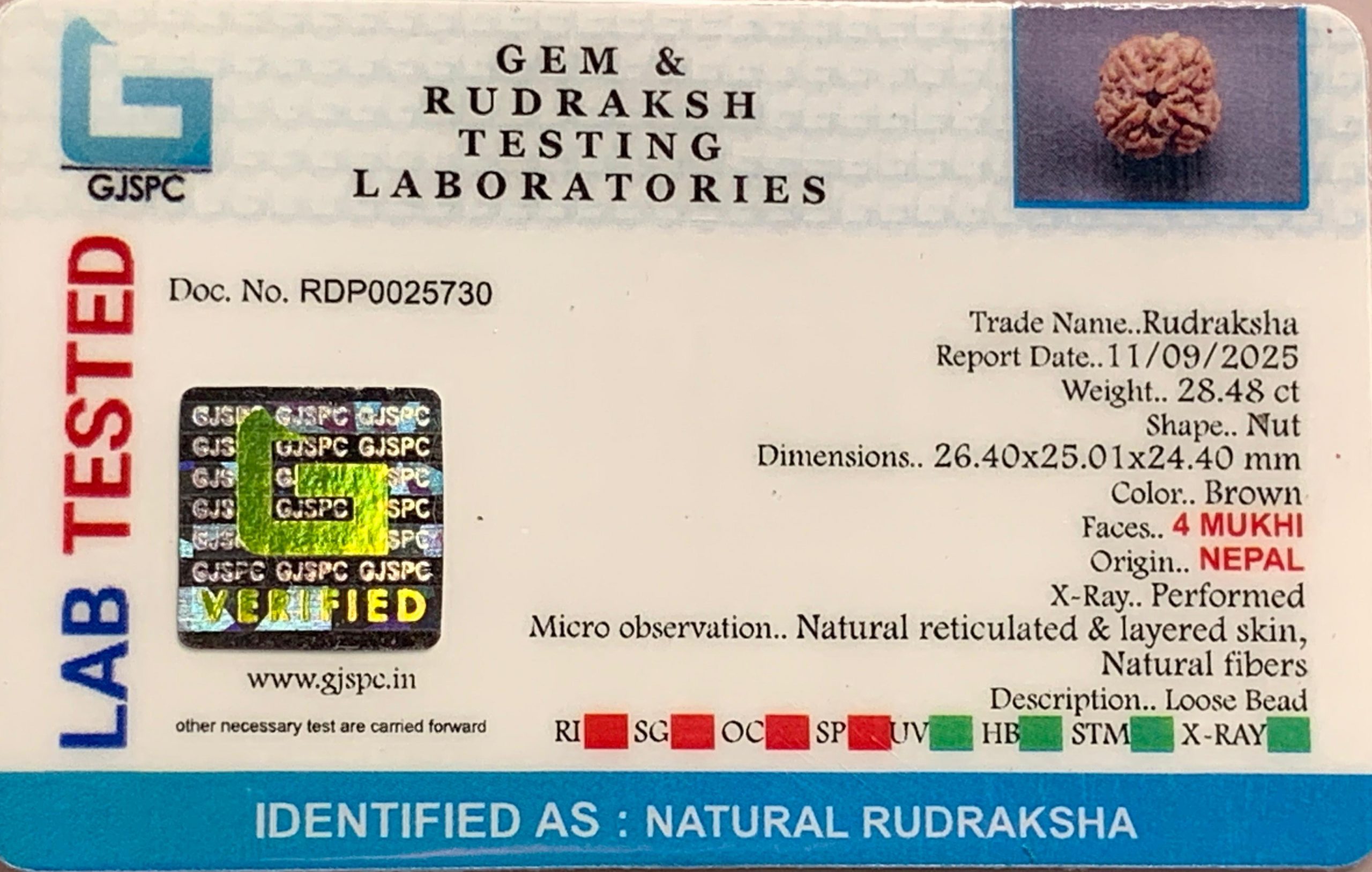 Four Faced Rudraksha is ruled by Mercury and cure diseases of ear, throat and nose, paralysis, sexual problems, gall bladder diseases, blood circulation, cough, brain related illness, asthma, stammering, memory lapse, respiratory tract problems, diseases affecting hands, arms, lungs and thyroid gland, etc.