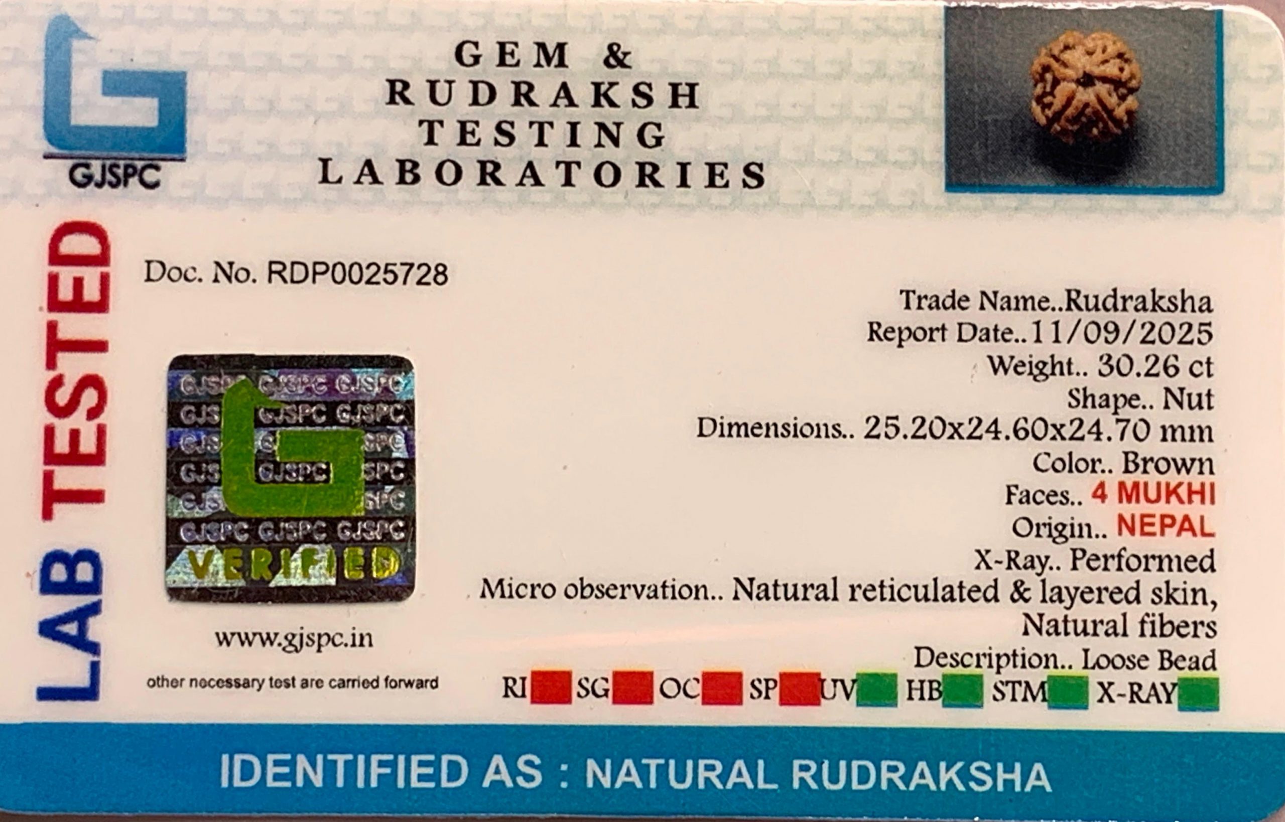 Four Faced Rudraksha is ruled by Mercury and cure diseases of ear, throat and nose, paralysis, sexual problems, gall bladder diseases, blood circulation, cough, brain related illness, asthma, stammering, memory lapse, respiratory tract problems, diseases affecting hands, arms, lungs and thyroid gland, etc.