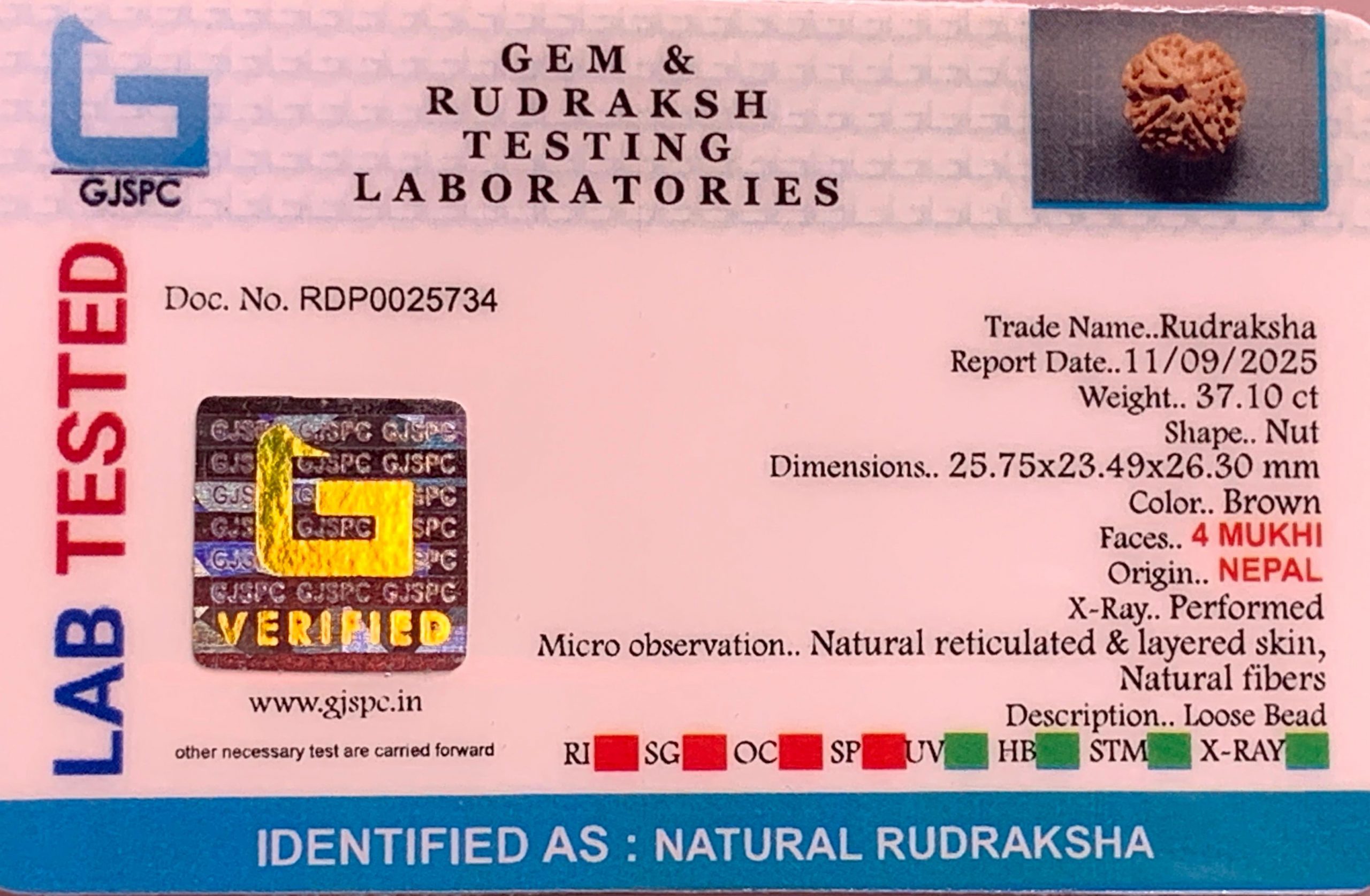 The four Mukhi Rudraksha Bead is influenced by the creatives wisdom of the four headed Lord Brahma. This Rudraksha gives the Wearer creative power and provides him learning and knowledge. All students must wear it. This Rudraksha is beneficial to teacher, scientist, intellectual, artist, write and journalist. It increases wit and intelligence.