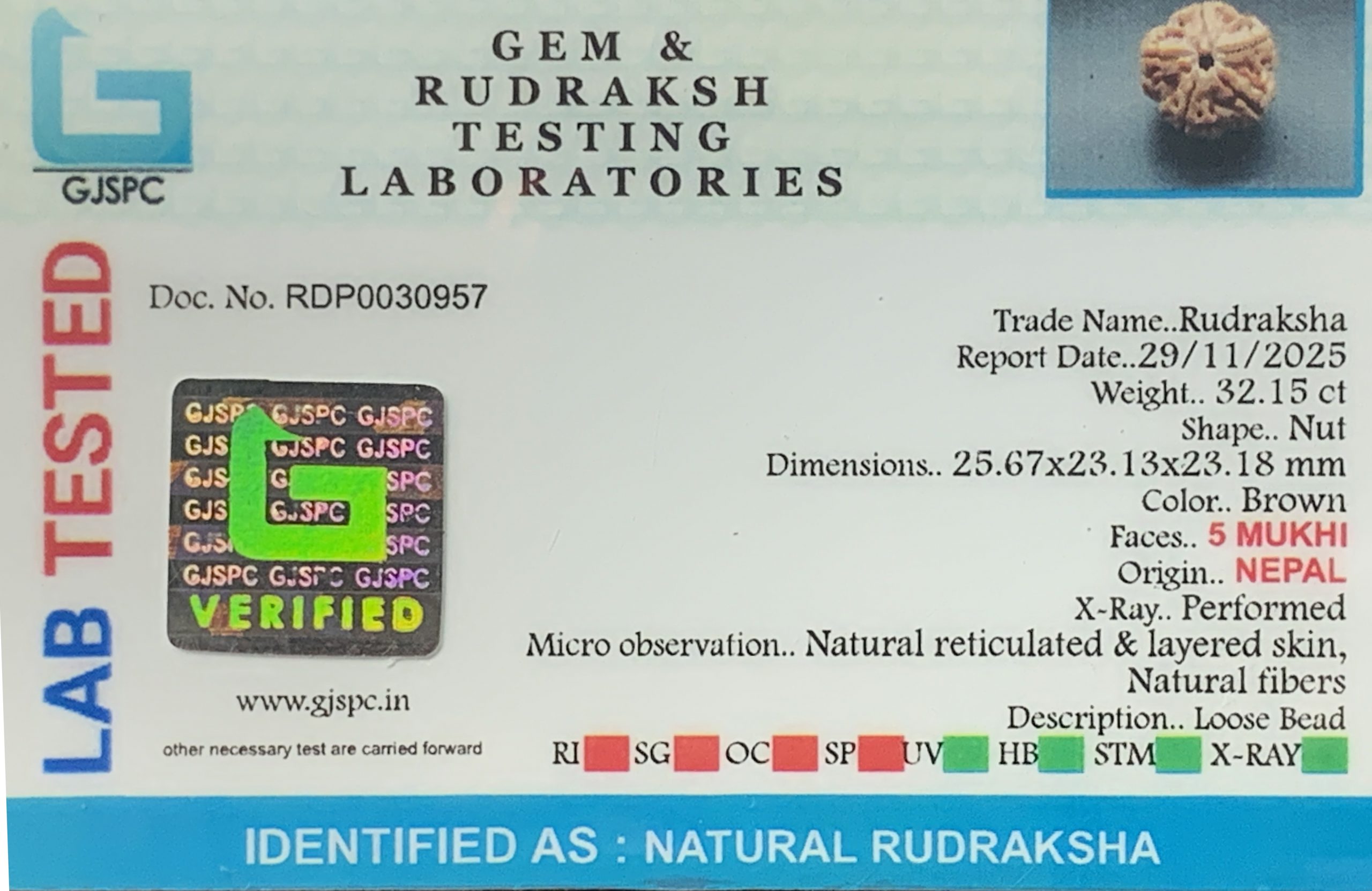 Five Faced Rudraksha is governed by Jupiter and cures diseases of liver, fistula, acidity,  blood pressure, breast ailments, problems of thighs, vertebral column and for memory, mental disability, heart problems, stress, anger management, diabetics, piles, neurotic and maladjustment problems.