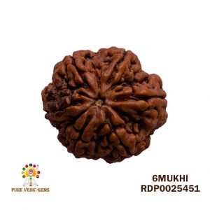 Six Faced Rudraksha is governed by Venus and is useful for diseases like epilepsy, gynecological problems, Problems of throat, neck, kidney, sex organs, thyroid, sexuality, dropsy, urinary and eye diseases, conceiving problem, indigestion, arthritis and for all obstruction in veins/nerves.