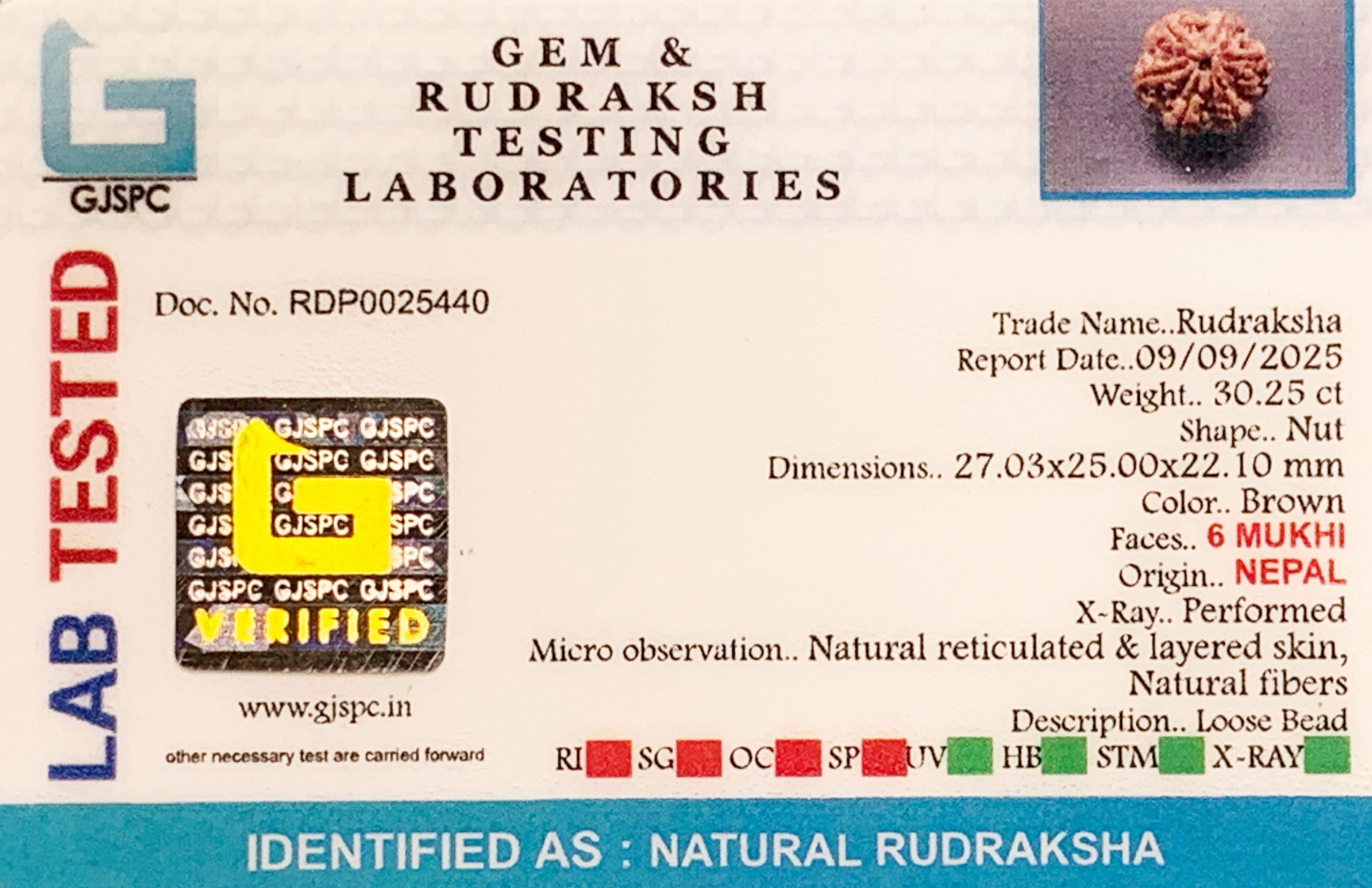 6 Mukhi Rudraksha (6.050g)