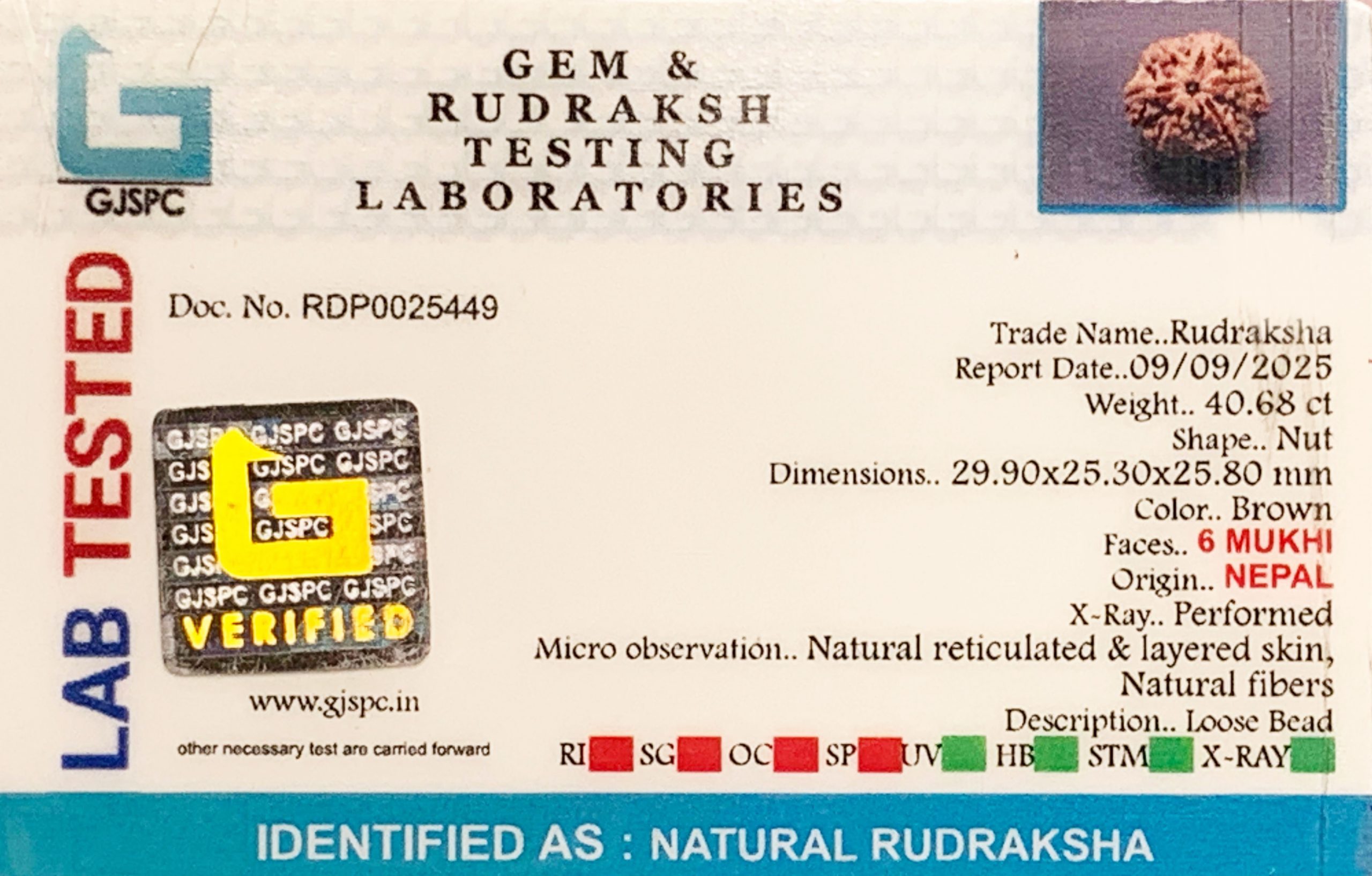Six Faced Rudraksha is governed by Venus and is useful for diseases like epilepsy, gynecological problems, Problems of throat, neck, kidney, sex organs, thyroid, sexuality, dropsy, urinary and eye diseases, conceiving problem, indigestion, arthritis and for all obstruction in veins/nerves.