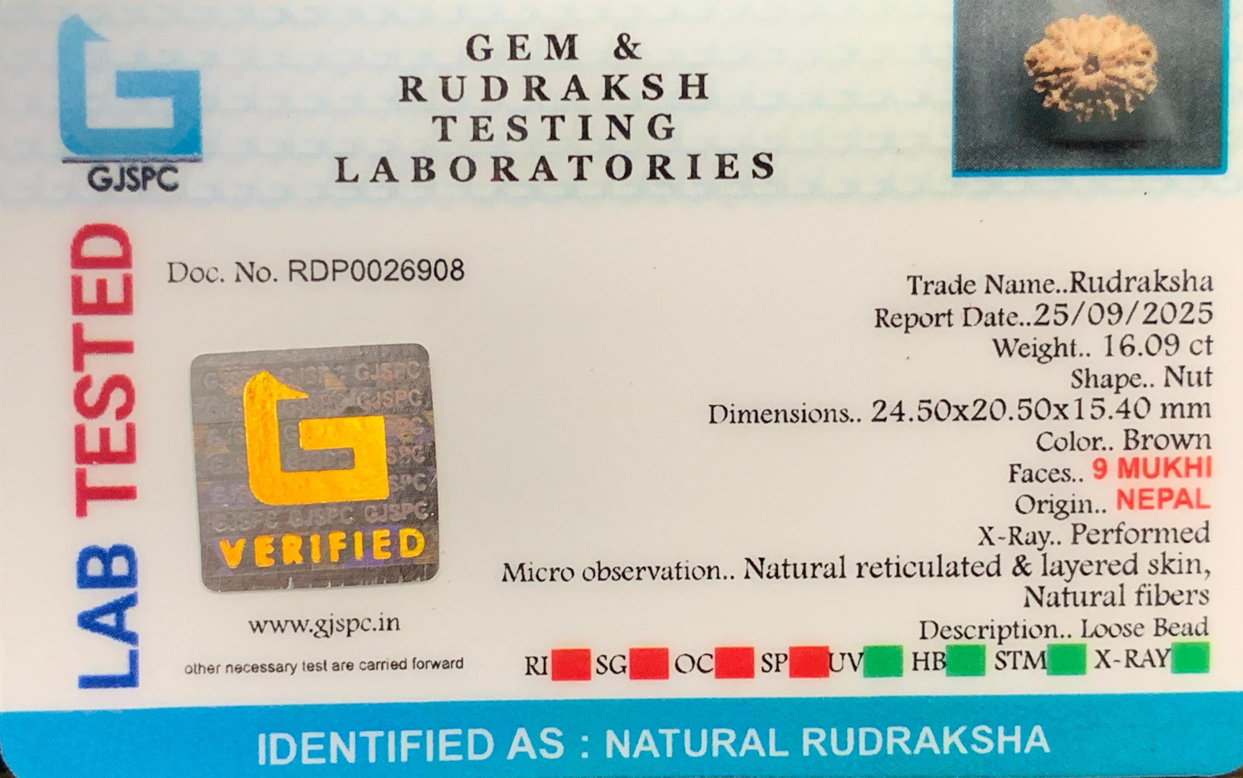 Nine Mukhi Rudraksha (Ruling Planet Ketu)