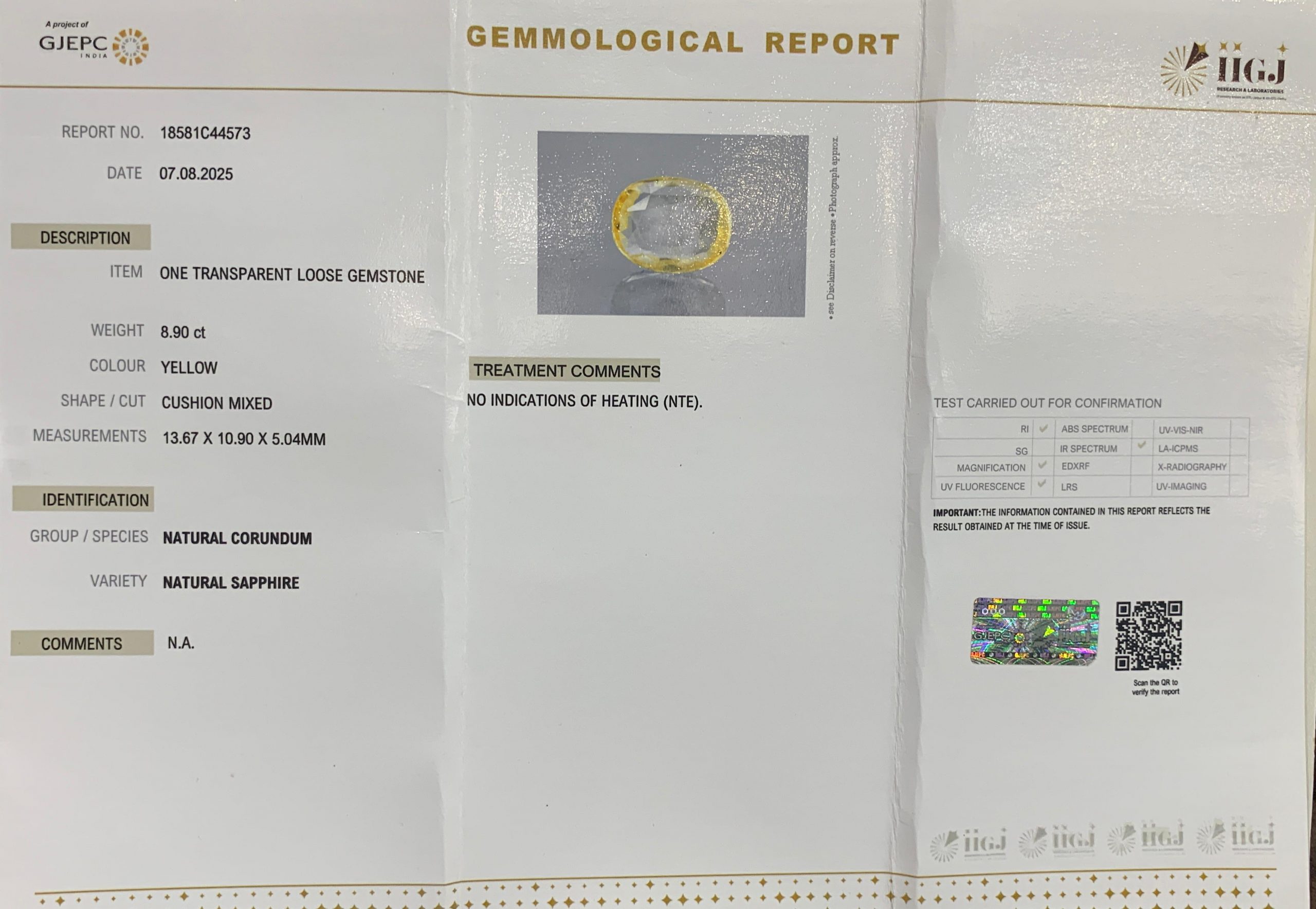 Yellow Sapphire 8.90ct.@27292per. ct. (Super Luxury)